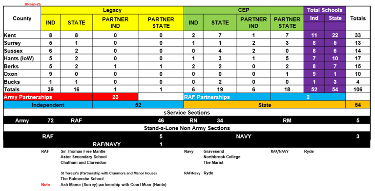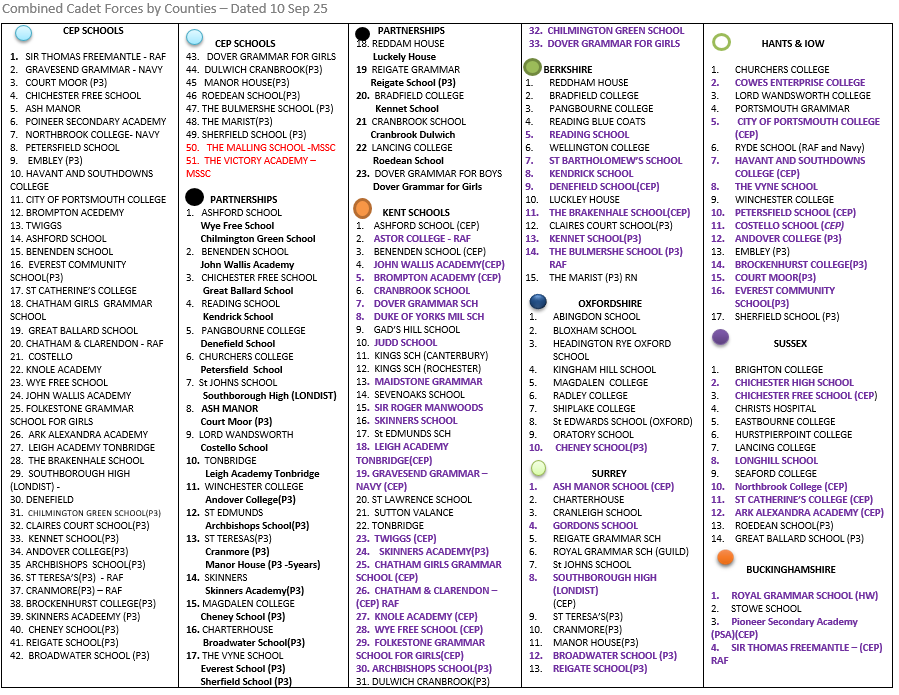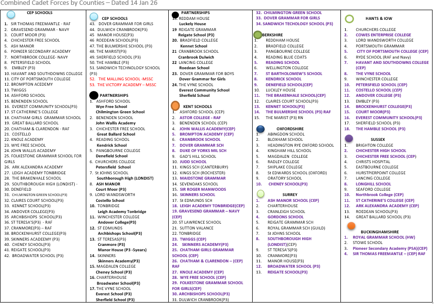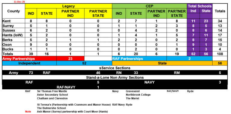The following schools across the South East currently have a CCF: