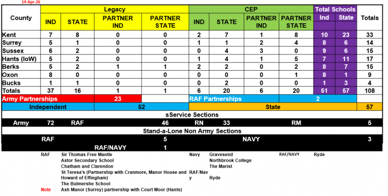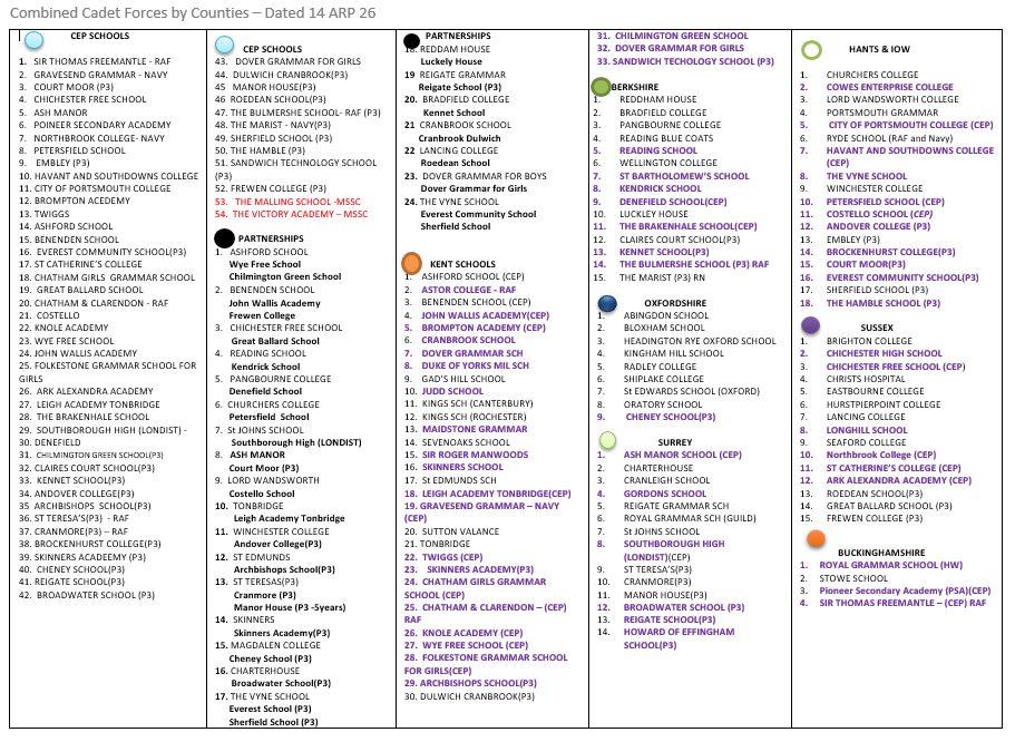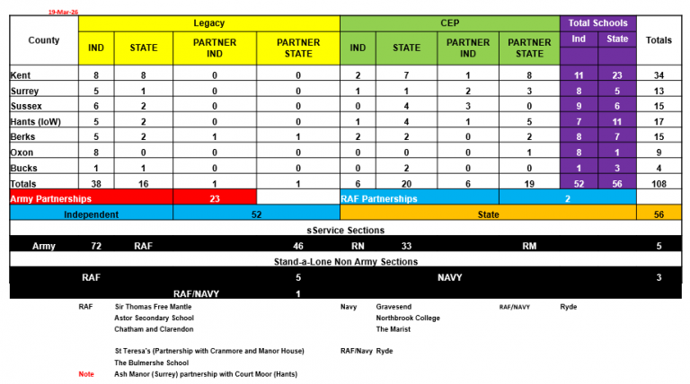 The following schools across the South East currently have a CCF:Â